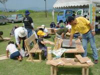 | 新米つかみどり | 木工教室 本立てに挑戦 | 宝さがし 隠す場所を探すのが大変 | 抽選会 玄米30kもありました |