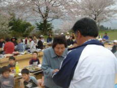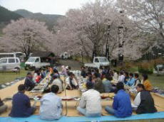 子ども達や老人会の参加で、すばらしいさくらの下での宴会でした。この席で牧野の中のさくらを大事に残して行こうと確認しあつた