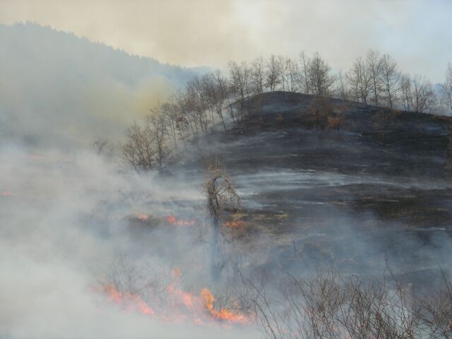 | 夜峰山 913m | 頂上から東西にわかれて点火 | 西からの風で東側は、煙で大変だったろう |