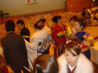 | 高橋教育委員長開会挨拶 | 着物のほとんどが振袖 男姓2? | 祝宴。ジュニアリーダーの支援 | 光さんとツーショット |