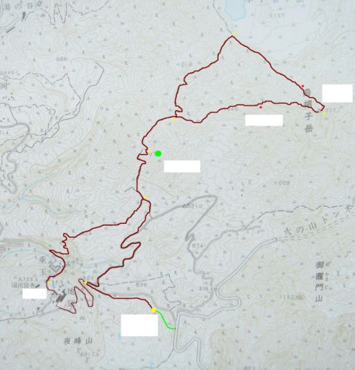 9時23分スタート〜59分林道終点〜10時5分かえで〜15分木階段〜35分駒返峠〜11時10分多津山峠〜・35分天神峠〜・52分展望所
