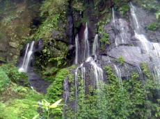 | 大自然はすばらしい | ロープがたより | 岩盤の割れ目から噴出す水 | 上流に広がる流れ |